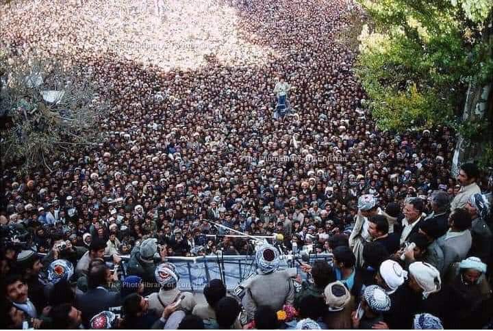 وێنەی دکتۆر #عەبدولڕەحمان قاسملو# کە ووتار بۆ خەڵکی #مەهاباد# دەخوێنێتەوە ساڵی1979، شاری #مهابات# پایتەختی کۆمارە ساواکەی #کوردستان#...!!!