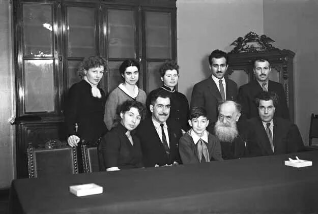 کەسایەتییەکانی ناو وێنەکەناسراوەکان دانیشتووەکان لە چەپەوە: (1- مارگرێتا ڕۆدینکۆ، 2-#سەید عەزیز شەمزینی#، 3-دمیتری ئۆربەلی، 4- نەناسراوە، 5- #قەناتی کوردۆ#)