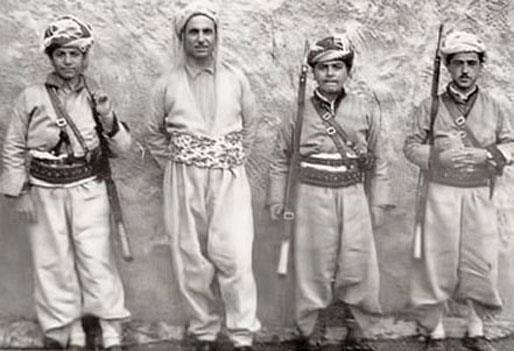 کەسایەتییەکانی ناو وێنەکە: لەڕاستەوە: #ئیدریس بارزانی#، سابیر بارزانی، جەواد شەفیق ئاغای حەوێزی، #مەسعود بارزانی#.