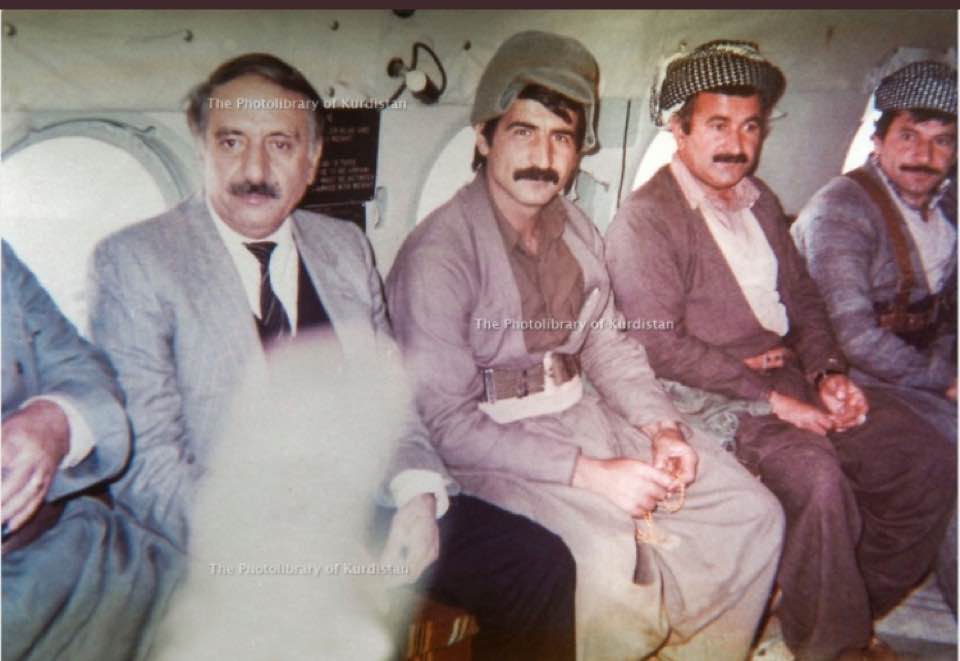 کەسایەتییەکانی ناو وێنەکە: (#قاسملۆ# و #مەلا بەختیار# و #ملازم عومەر# و سەید کەریم هاودیانی)[1]