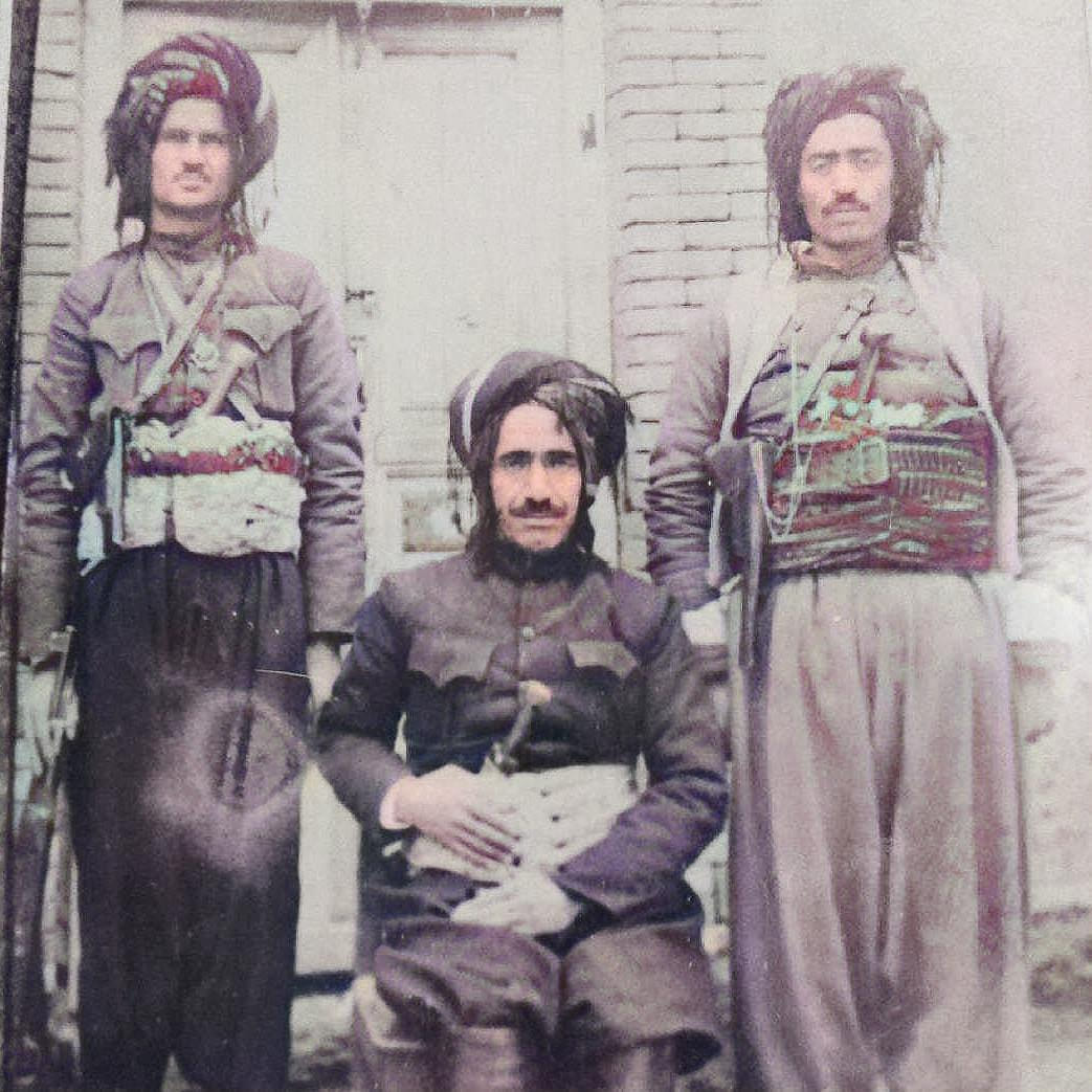 کەسایەتییەکانی ناو وێنەکە: لەڕاستەوە: ئاغای سەرمەستی قەدیمی و حەبیبوڵڵاخان بۆداقی و باباغای یاڵئاوا.