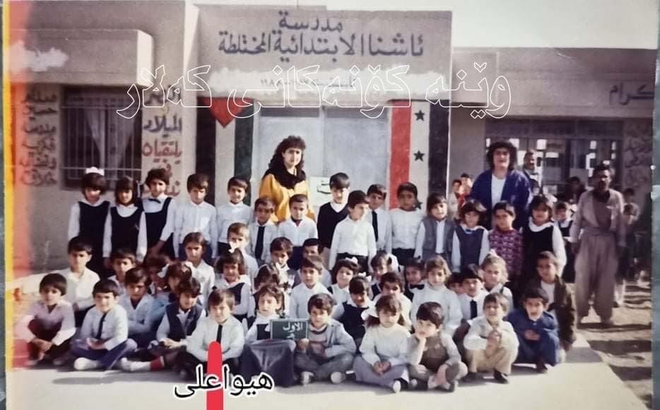کەسایەتییەکانی ناو وێنەکە: مامۆستا سەلوا و مامۆستا ژیان و قوتابیانی پۆلی یەکەمی سەرەتایی لە قوتابخانەی ئاشنای سەرەتایی.[1]