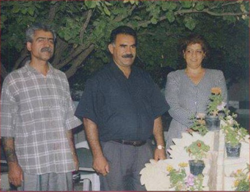 کەسایەتییەکانی ناو وێنەکە: لەڕاستەوە: #مەرزیە فەریقی# و #عەبدوڵلا ئۆجەلان# سەرۆکی پارتی کرێکارانی کوردستان و ناسری ڕەزازی.