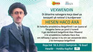 مؤسسة سما للثقافة والفنون الكُردية وبالتعاون مع المخرج آلان پيواند يدعوانكم لحضور عرض الفيلم الوثائقي عن الشخصية الوطنية الكُردية ((حسن حاجو آغا)) في ذكرى وفاته ، سيتم عرض الفيلم الوثائقي عن حياته السياسية ،في قاعة سما بفندق كابيتول اربيل وذلك في يوم الجمعة 18-3-2022 الساعة السابعة مساء.[1]