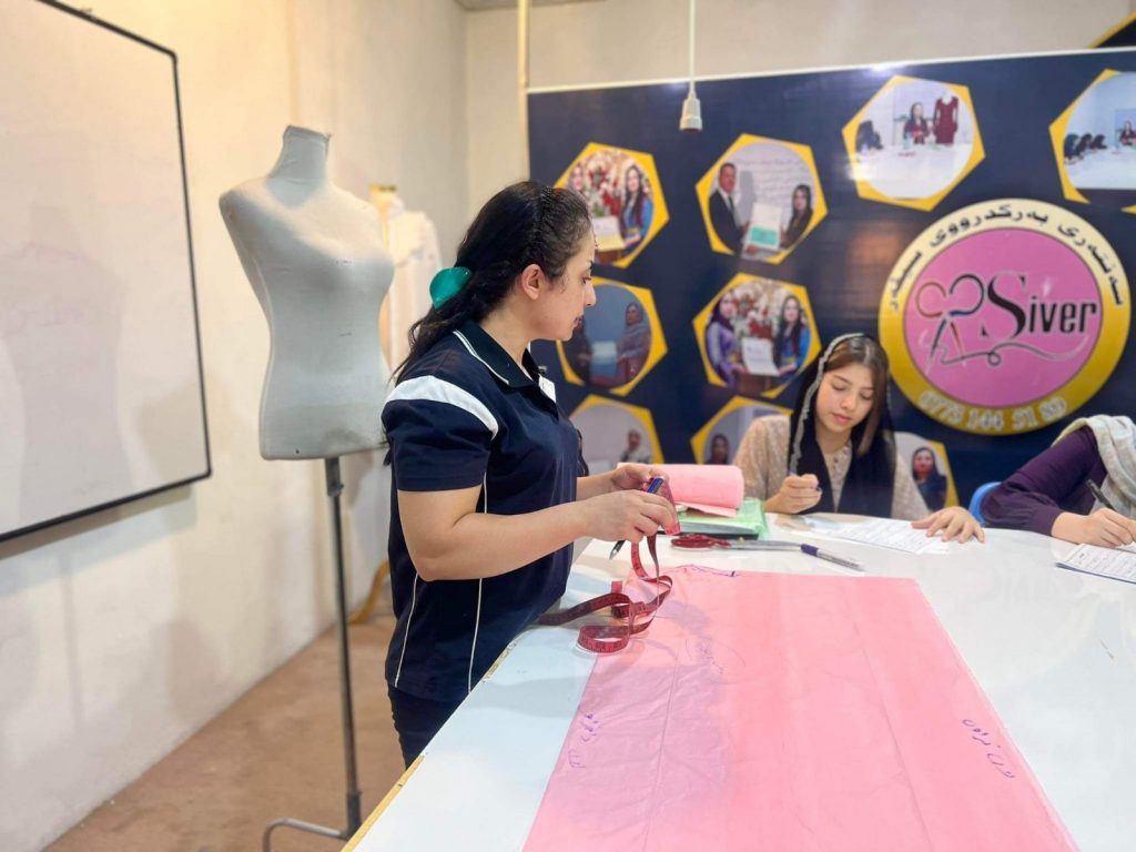 خانمێکی دەست ڕەنگین و لێهاتووە، پیشەکەی بەرگدوروە، لە ئێستادا 2022 یەکەم خانمە لە #گەرمیان# خولێکی دورمانی بۆ پیاوان کردۆتەوە و فێری شێوازی دورینی جلی خانمانیان دەکات.