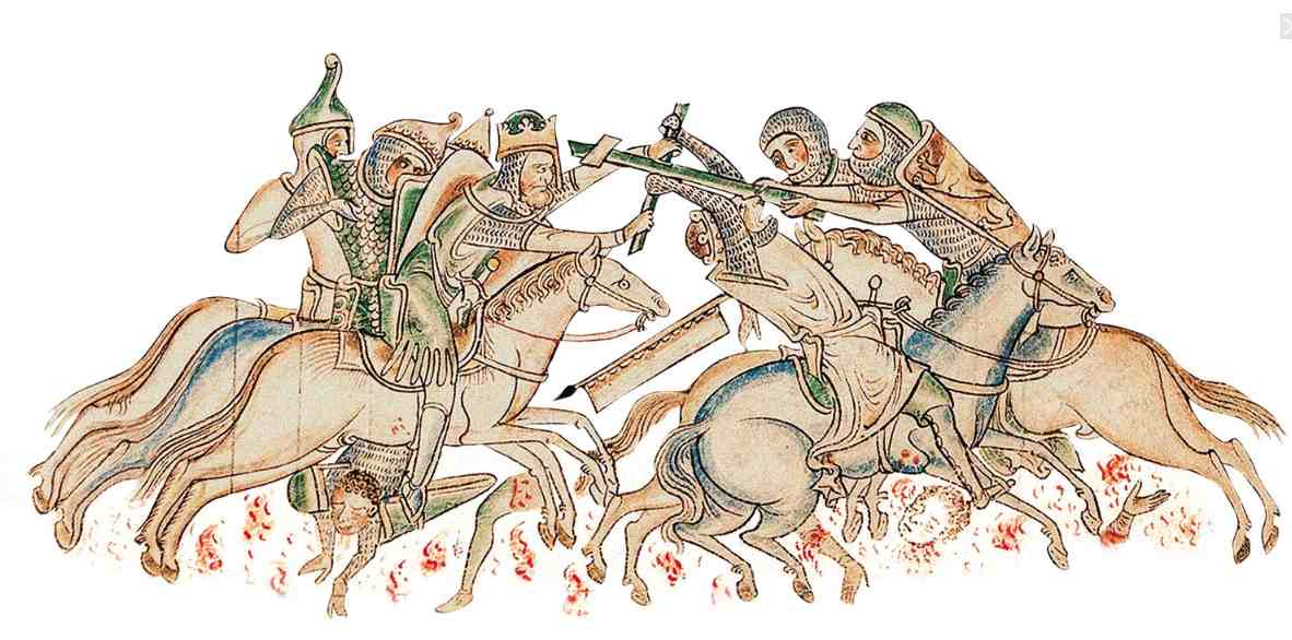 Ayrıca iri yapılı uzun Bavyeralılara ve eğitimli Şvablara da sahibiz. Bunların yanında, tedbirli ve dikkatli olan Franklar, iyi kılıç kullanan Saksonyalılar, sabırsız Burgunlar, tam techizatlı Alp boyları ile ölümü ciddiye almayan Böhmler ve zevkle mızraklarını fırlatan Frizler.
