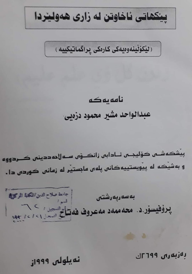 شوێن: کۆلێجی ئاداب- زانکۆی سەڵاحەدین