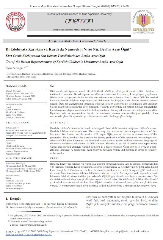 Anemon Muş Alparslan Üniversitesi Sosyal Bilimler Dergisi 2020 8(UMS’20) 71–79