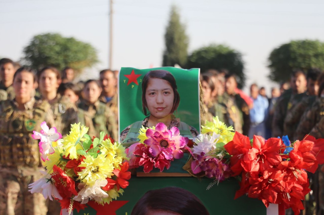 شَيَّعَ أهالي #إقليم الجزيرة# جثمانيَ الشَّهيدتين، الأولى الرَّئيسة المشتركة لمكتب شؤون العدل والإصلاح في إقليم الجزيرة “زينب مُحمَّد”، التي استشهدت إثر استهداف طائرة مُسيَّرة تابعة لل#احتلال التُّركيّ# على طريق ديرك، وهي على رأس عملها، والثّانية الشَّهيدة “بيريتان ديرسم”، الاسم الحقيقيّ “نيرمين سينو”، التي استشهدت أثناء قيامها بواجبها في الطبقة.