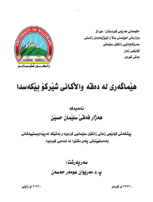 پێشکەشی کۆلێجی زمان ی زانکۆی سلێمانی کراوە، و بەشێکە لە پێداویستییەکانی بەدەستهێنانی پلەی دکتۆرا یە لە ئەدەبی کوردی دا.