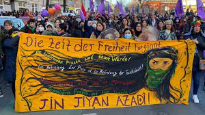 وتابعت شيرين حديثها بالقول: بان الانتفاضة بدأت في ايران تحت شعار المرأة، الحياة، الحرية والذي يعود بجذوره الى حركة الحرية الكردية ووضعها القائد عبدالله اوجلان، فعندما بدأ القائد عبدالله اوجلان بثورته داخل الشرق الأوسط، قام بتحليل الثورات التي حصلت في الشرق الاوسط وشرحها مرةً أخرى، والتاريخ الذي تم نفيه من قبل الدول السومرية و الدول القومية والانظمة الحاكمة في ذلك الوقت، القائد عبدالله اوجلان ومن خلال تحليلاتها قام بثورة مجتمعية تقودها المرأة لمعرفة ذاتها وتحرير نفسها من العبودية، فاعتمد القائد عبدالله اوجلان على تحرير المرأة وكيفية تنظيم نفسها فإذا وصلت المرأة الى معرفة ذاتها فستكون هناك ثورة حقيقة، وأضافت: معنى شعار المرأة الحياة الحرية بأن المرأة والحياة لهما نفس المعنى في كردستان، إن المرأة والحياة مفهومان متشابهان، المرأة هي الطبيعة وهي الارض والحياة والمجتمع، وعلى هذا الاساس لفت القائد عبدالله اوجلان الانتباه إلى موضوع تحرير المرأة وكيفية استرجاع خصوصياته في المجتمع الطبيعي و المحافظة عليها.