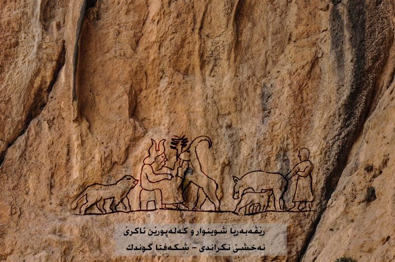 لە هەڵکەنراوی دووەمدا کە ڕاستەوخۆ دەکەوێتە ژێر هەڵکەنراوی یەکەم، لەلای ڕاستەوە دوو پیاو سەری ئاژەڵێکیان گرتووە، پێدەچێت بیانەوێت بیکوژن، لە پشتیانەوە کەسێکی تر وەستاوە و ڕووی لە پێشەوەیە هەردوو دەستیشی بەرز کردووەتەوە.
