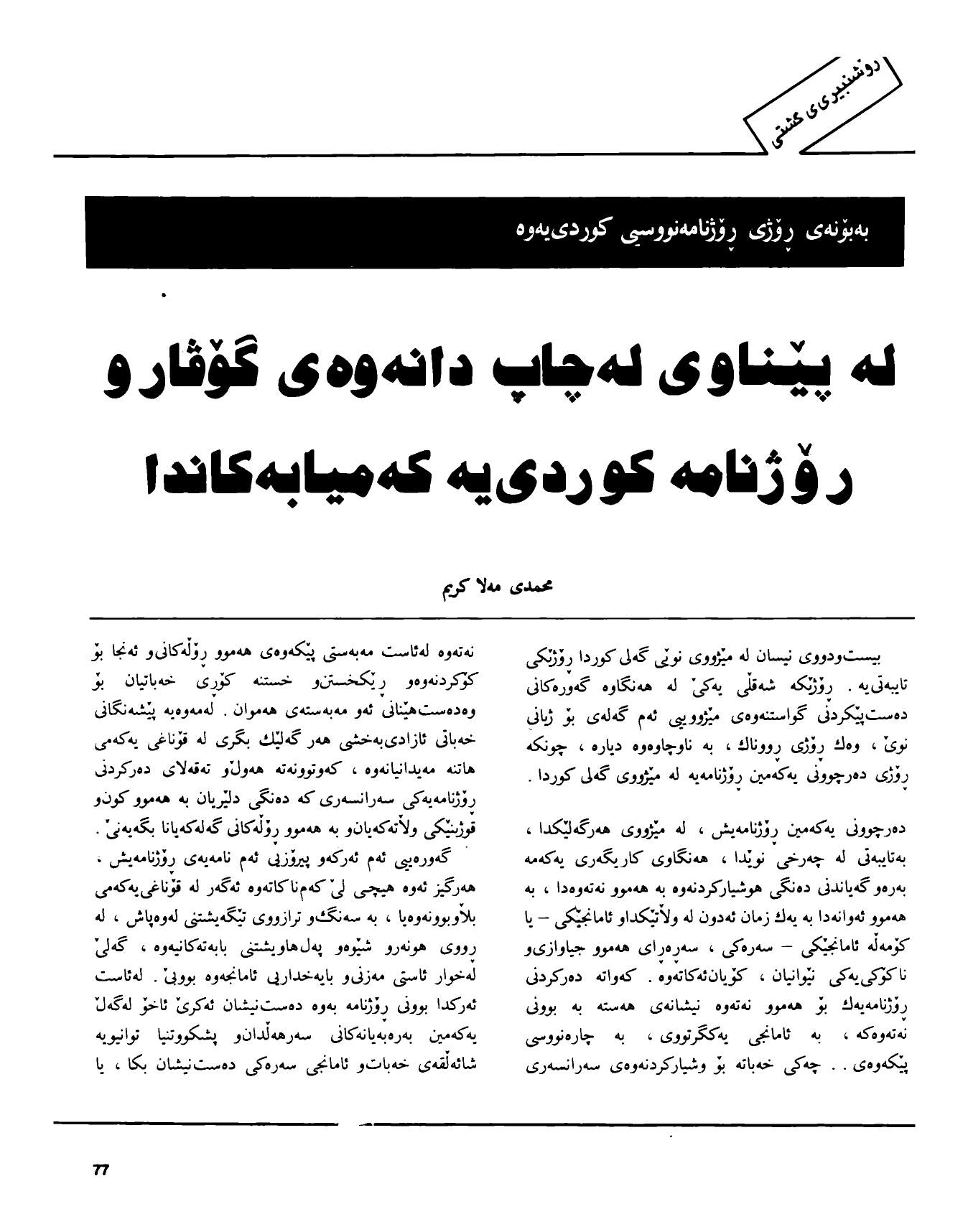 بە بۆنەی ڕۆژی ڕۆژنامەنووسیی کوردی یەوە-لە پێناوی لەچاپ دانەوەی گۆڤار و ڕۆژنامە کوردی یە کەمیابەکاندا