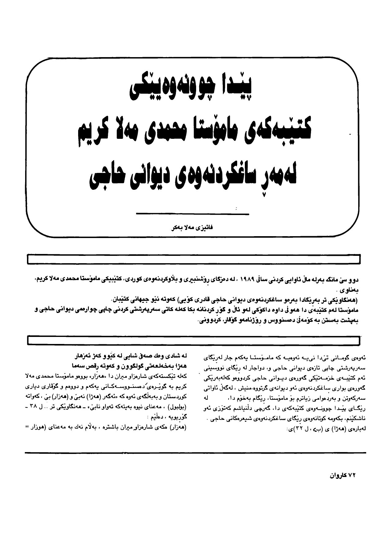 پێداچوونەوەیەکی پەرتووکەکەی مامۆستا محەمەدی مەلا کەریم لەمەڕ ساغکردنەوەی دیوانی #حاجی قادری کۆیی#