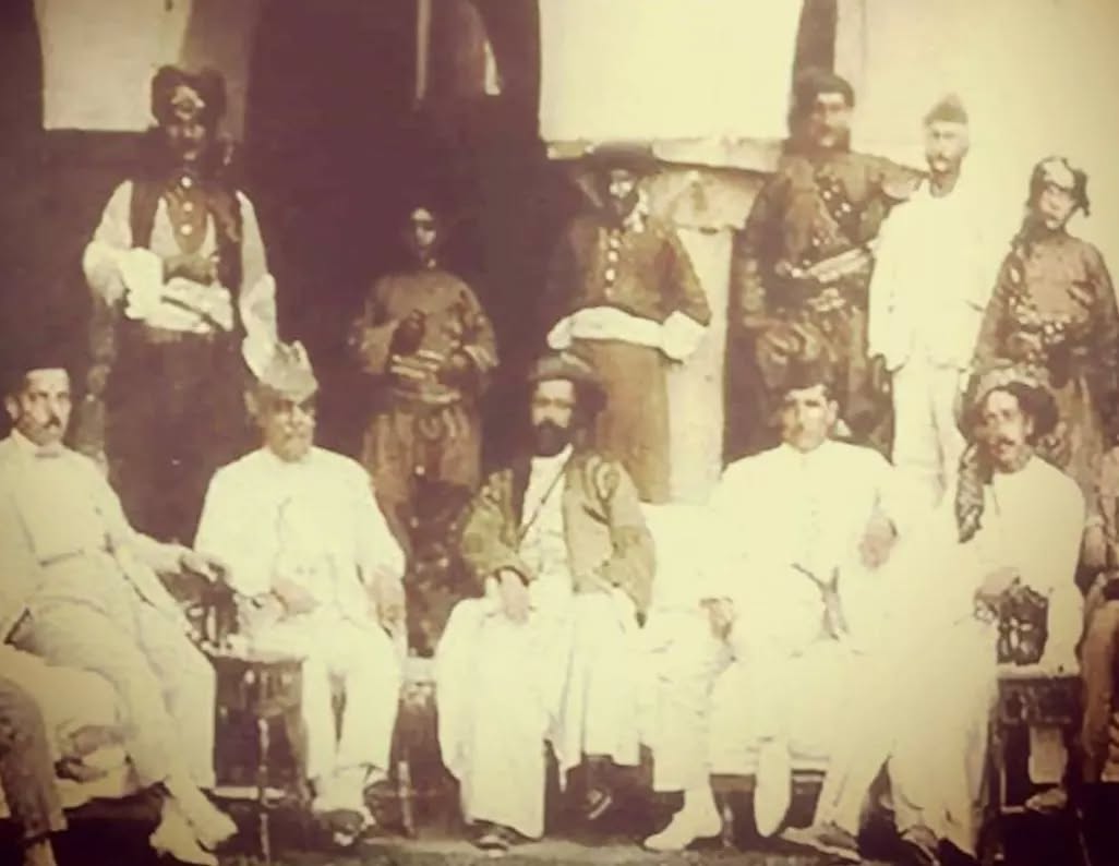 کەسایەتییەکانی ناو وێنەکە: لە ڕاستەوە سێیەم کەس: نەمر #شێخ مەحمودی حەفید# لەگەڵ کۆمەڵێک لە پیاوماقوڵان و کەسایەتی هۆزەکانی کورد، شایانی ئاماژەیە کە ئەم وێنە لە دوای گەڕانەوە و دوورخستنەوەی مەلیکی کوردستان بۆ هندستان لەلایەن ئینگلیزەکانەوە گیراوە.