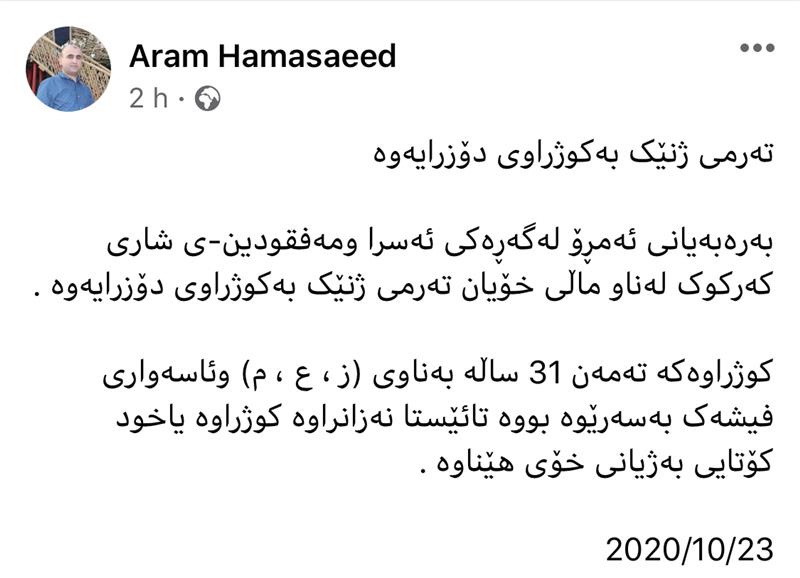 لە تۆڕە کۆمەڵایەتییەکانەوە: 23-10-2020