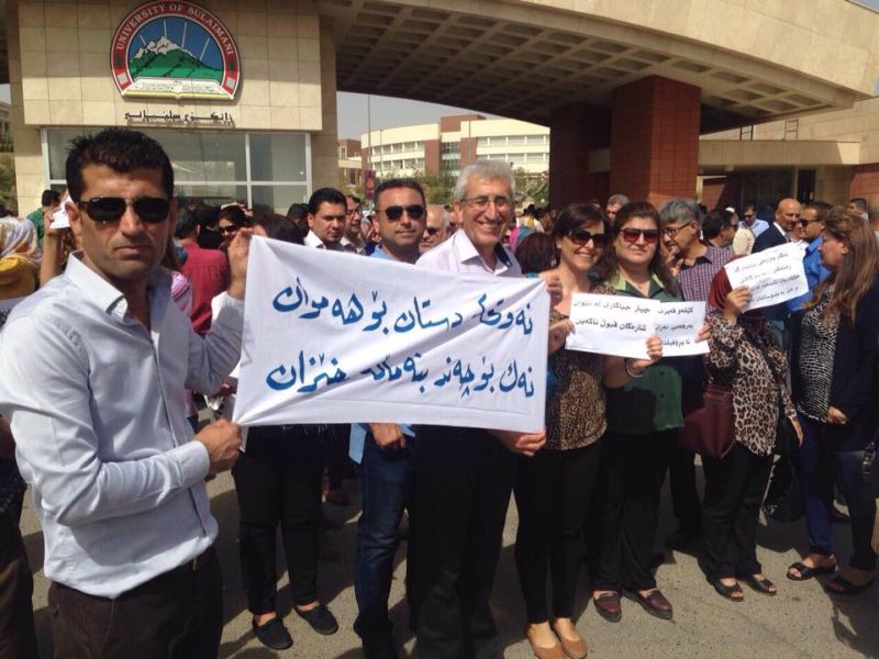 - مامۆستایان و فەرمانبەرانی هەشت زانکۆ و دەستە لەهەرێمی کوردستان ئەمڕۆ گردبونەوەی ناڕەزاییان ئەنجامداو داوایانکرد گۆرانکاری لە پاشەکەوتی موچەدا بکرێت و جەختیانکردەوە بەم جۆرەی ئێستا ناتوانن بەردەوامی بە خوێندن بدەن.