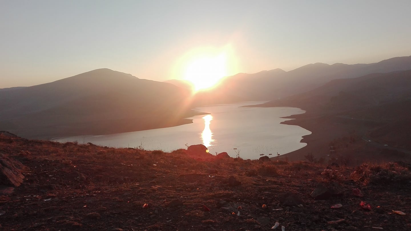 وێنەکە: (چەمی سێ کانیانی شاری مەهاباد، لە ساتی خۆرئاوابووندا.)