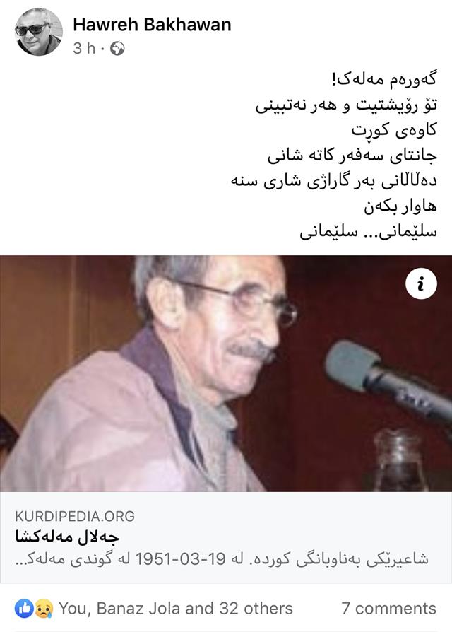 - کۆچی دوایی هۆزانەوانی بەناوبانگ #جەلال مەلەکشا#.