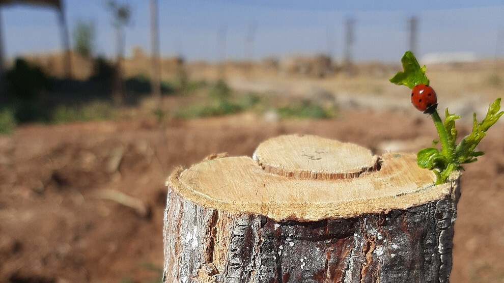Am 19. Juli feiert die Revolution von Rojava ihr zehnjähriges Bestehen. Die Kampagne „Make Rojava Green Again“, die sich für die Wiederaufforstung der Region einsetzt und Projekte für den Aufbau ökologischer Energieinfrastrukturen und die Versorgung der Bevölkerung mit unbelasteter und ungiftiger Nahrung und Wasser betreibt, hat anlässlich des bevorstehenden Jahrestags der Revolution einen Appell an die weltweite Klimagerechtigkeitsbewegung veröffentlicht. Darin ruft die Kampagne dazu auf, eine internationale Front im Kampf für Klimagerechtigkeit aufzubauen: