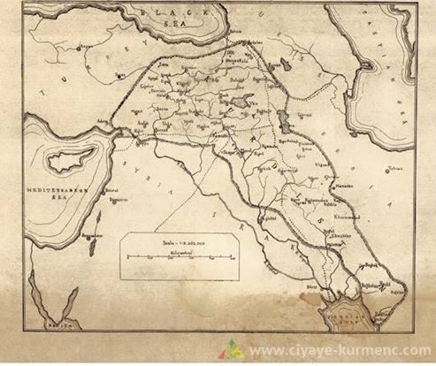 خريطة كردستان والتي وردت في وثائق جمعية خويبون الكردية
