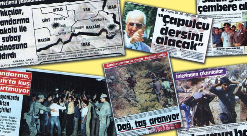 Erst am 18. August 1984 erreichte der 15. August die türkischen Medien. Während die Zeitung Milliyet auf ihren Innenseiten einen kurzen Artikel mit der Schlagzeile „Separatisten griffen zwei Gendarmerieposten und ein Offizierskasino an“ veröffentlichte, zensierte Hürriyet die Ereignisse vom 15. August mit der Schlagzeile „Terroristen, die einen Anschlag in Eruh und Şemdinli verübten, werden gesucht“. In den folgenden Tagen versuchten die türkischen Medien, die am 15. August verlorene Initiative mit Schlagzeilen wie „Die Soldaten sitzen ihnen im Nacken“, „Die Angreifer sind eingekesselt“ und „Die Gendarmerie ist in Eruh auf der Pirsch“ wiederzugewinnen. Während diese Meldungen wie zentral gesteuert in den türkischen Medien auftauchten, verkündete der Chef der Militärjunta, Kenan Evren: „Terroristen, die es wagen, gegen den Staat zu den Waffen zu greifen, müssen sofort gefasst und dem eisernen Griff der türkischen Justiz übergeben werden.“ Evren gab dafür eine Frist von 72 Stunden an und sagte: „Die Plünderer werden ihre Lektion lernen.“ Der Putschgeneral glaubte, dass der „29. kurdische Aufstand in der Geschichte der Republik“ das gleiche Ende erleiden werde wie die 28 anderen zuvor.