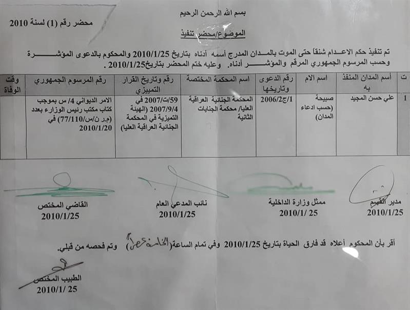 - تاوانباری کەیسی ئەنفال #عەلی حەسەن مەجید# - عەلی کیمیاوی لە بەغدا لەسێدارەدرا.[1]