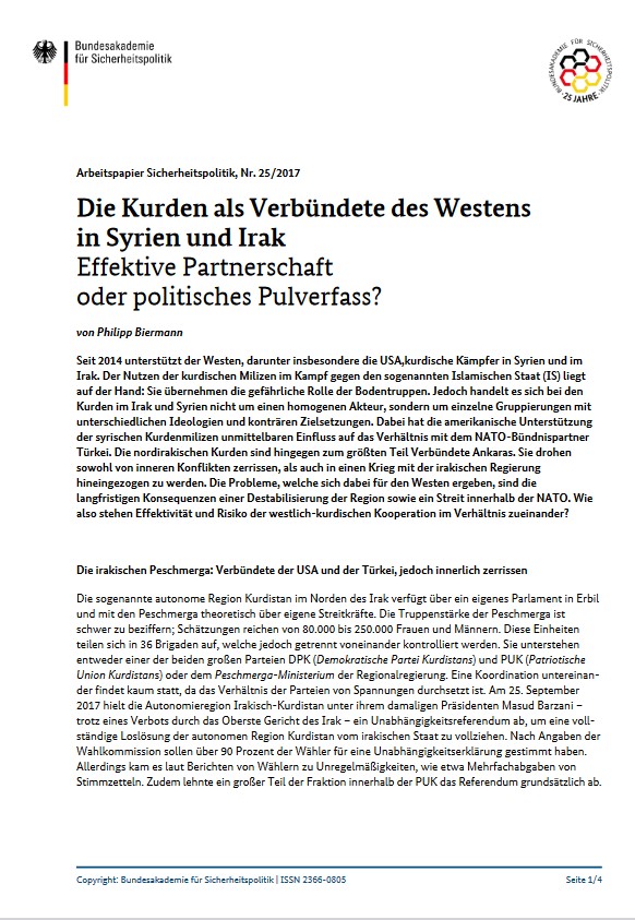 Die Kurden als Verbündete des Westens in Syrien und Irak Effektive Partnerschaft oder politisches Pulverfass?