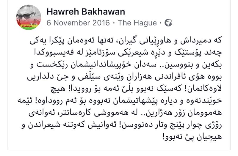 - هاوسەرۆکان و پەرلەمانتارانی هەدەپە لەزیندانەوە لەڕێی پارێزەرەکانیانەوە هەریەکەو پەیامێک ئاڕاستەی هاوڵاتیان و ڕای گشتی دەکەن و تێیدا جەخت لەبەردەوامی بەرخودان و لەدەستنەدانی هیوا دەکەن.
