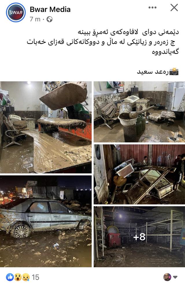 - بەهۆی بارانی زۆرەوە لە زۆرێک لە شار و شارۆچکەکانی باشووری کوردستان ئاو کۆبووەوە و لافاو دروستبوو. بارانەکە زیانی ماددیی زۆری لێکەوتەوە و پشووی فەڕمی بۆ ڕۆژی دوایی ڕاگەیەندرا.[1]