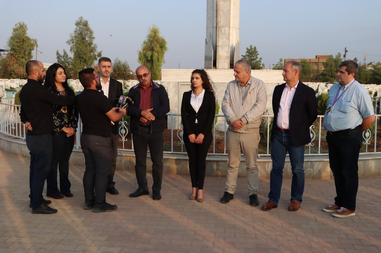 وفي تصريح صحفي في مزار الشهيد دليل ساروخان، رحب نائب الرئاسة المشتركة لدائرة العلاقات الخارجية للإدارة الذاتية لشمال وشرق سوريا، روبيل بحو، بالوفد، قائلاً: البرلمانيون الأوروبيون أرادوا في بداية دخولهم إلى المنطقة أن تكون زيارتهم الأولى إلى مزار الشهداء الذين ضحوا بأنفسهم في سبيل أن نعيش بأمان، وإنجاح مشروعنا الديمقراطي.