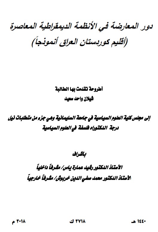 عنوان الكتاب: دور المعارضة في الانظمة الديمقراطية المعاصرة (إقليم كوردستان العراق انموذجا )
