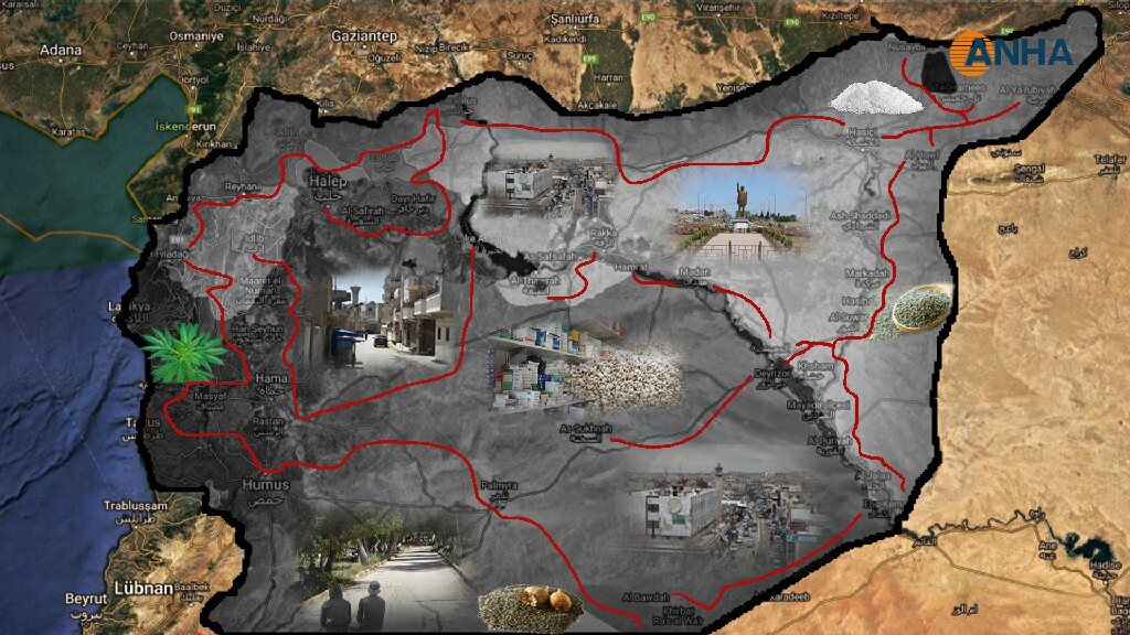 وحسب تحقيقات القوات الأمنية في شمال وشرق سوريا واعترافات أعضاء شبكات المخدرات المعتقلين؛ فإن أعضاء هذه الشبكات ينتقلون إلى مناطق شمال وشرق سوريا من مناطق حكومة دمشق، ولبنان، والمملكة العربية السعودية والمناطق المحتلة من قبل تركيا، وانتقلت أسر عددٍ من هؤلاء الأشخاص من المناطق المحتلة من قبل تركيا إلى مناطق الإدارة الذاتية، ونظراً لتعميم أسمائهم على المنافذ الحدودية من قبل الإدارة الذاتية، فإنهم يستخدمون طرقاً غير قانونية (تهريب) أو هويات مزورة، إذ يتظاهر بعضهم بالنزوح، فيما يدخل البعض الآخر المنطقة بحجة التجارة أو إدخال المساعدات.