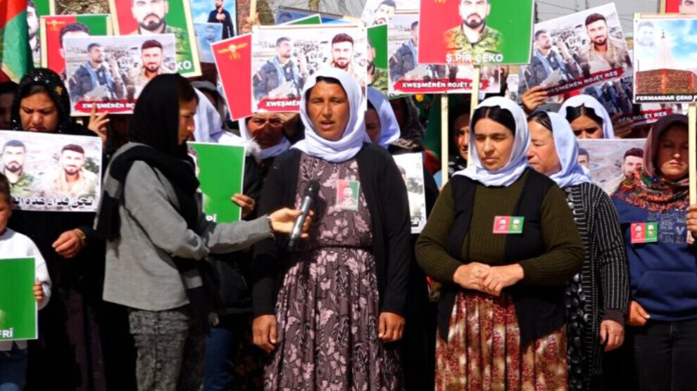 حيث أصدر بيان أمام مجلس المرأة في بلدة خانصور، وتحدثت عضوة مؤسسة عوائل الشهداء في شنكال، ميان ناصر، وأعربت في بداية حديثها عن تعازيها لجميع عوائل الشهداء، وأدانت تقاعس الحكومة العراقية، وقالت: إن العراق ليس له موقف، ولكننا لا ننتظر أحدا، فليعلم أردوغان ومن يدعمه جيداً أننا لن ندع دماء ابناءنا تذهب هدراً، ولن نبقى من دون رد، وسوف ننتقم لشهدائنا، وبغض النظر عن عدد الهجمات التي تُنفذ ضدنا، فسوف نتخلى عن رؤوسنا ومنازلنا، ولن نترك ديننا وأرضنا، و أولئك الذين تركوا أرضهم ليس لديهم دين، وإن أولئك الذين يتركون أرضهم لا كرامة لهم، كما تصر الحكومة العراقية على أن شنكال جزء من العراق، إذا كانت تقول الحقيقة، فلماذا تسكت عن الهجمات ضد شنكال؟ إننا كأمهات، سنحمل السلاح مع ابناءنا وندافع عن شنكال، حتى لو دفعنا أرواحنا فلن نتخلى عن قضيتنا وأرضنا .