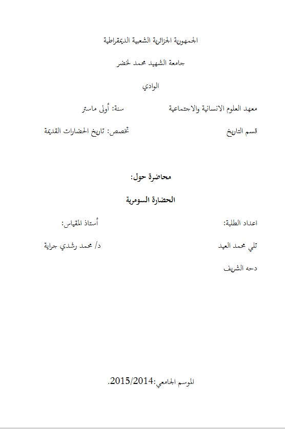 عنوان الكتاب: محاضرة حول: الحضارة #السومرية#