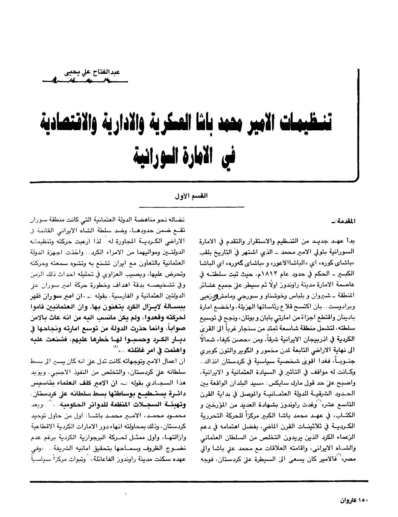تنظيمات الامير محمد باشا العسكرية والادارية والاقتصادية في الامارة السورانية-القسم الاول