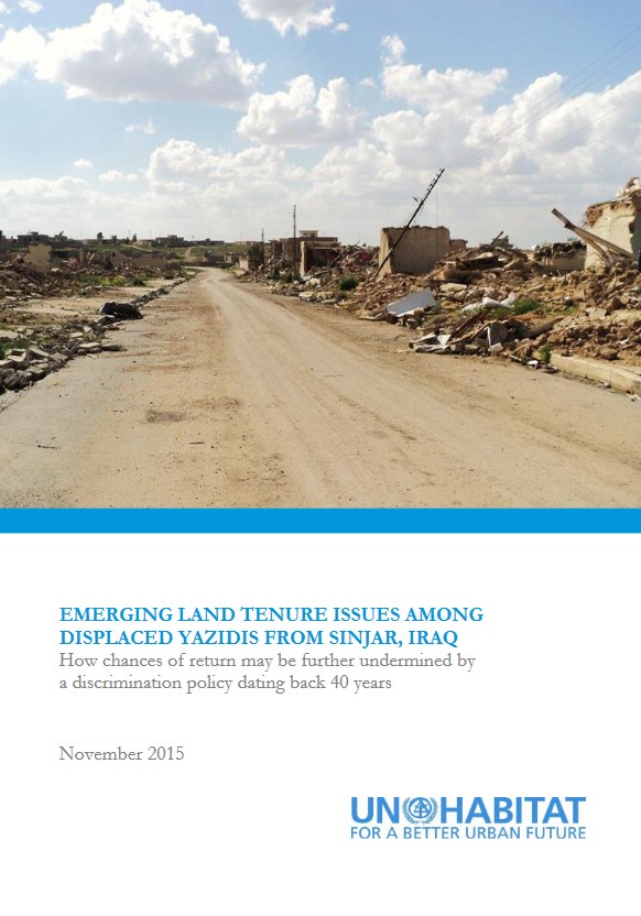 The present report aims to provide a better understanding of how the convergence of several circumstances, related to past discriminatory policies, forced relocation, double displacement and lack of tenure security may seriously affect the prospects of return of the Yazidi IDP community to their homeland in Sinjar. [1]