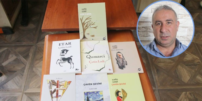 #Siirt#'in Eruh ilçesinde çocuk yaşlarda Batman'a göç eden ve burada çerçiliğe başlayan Çetin Lodi (44), 2 yeni kitap daha kaleme aldı. Lodi, 1990'lı yıllarda babasıyla birlikte çerçilik yapmaya başladı ve merkeze bağlı köy ve mahallelerde gitmediği sokak bırakmadı. #Kürt Dili# Araştırma ve Geliştirme Derneği’nde (Kurdi-Der) 2011-2013 yıllarında Kürtçe eğitim almaya başlayalan Lodi, sonraki süreçte Kürtçe kitap yazmaya başladı. Rê û Rê (Yol ve yol) adlı ilk şiir kitabını 2013'te çıkaran Lodi, daha sonra Çavên Şevînî (Gecenin gözleri) adında ikinci şiir kitabını yazdı. Lodi, yazdığı şiirlerde hasret, özlem, doğa ile Kürtlerin sevinç ve hüzünlerini işledi. Aynı zamanda çerçilik işini yaparken tanık olduğu olayları şiirlerine işledi.