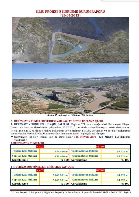 ILISU PROJESİ İŞ İLERLEME DURUM RAPORU (04.04.2014)