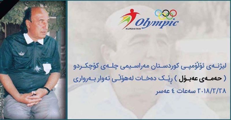 - چلەی ماتەمینیی یاریزانی بەناوبانگی #سلێمانی# #حەمەی عەبۆل# لە سلێمانی بەڕێوەدەچێت.[1]