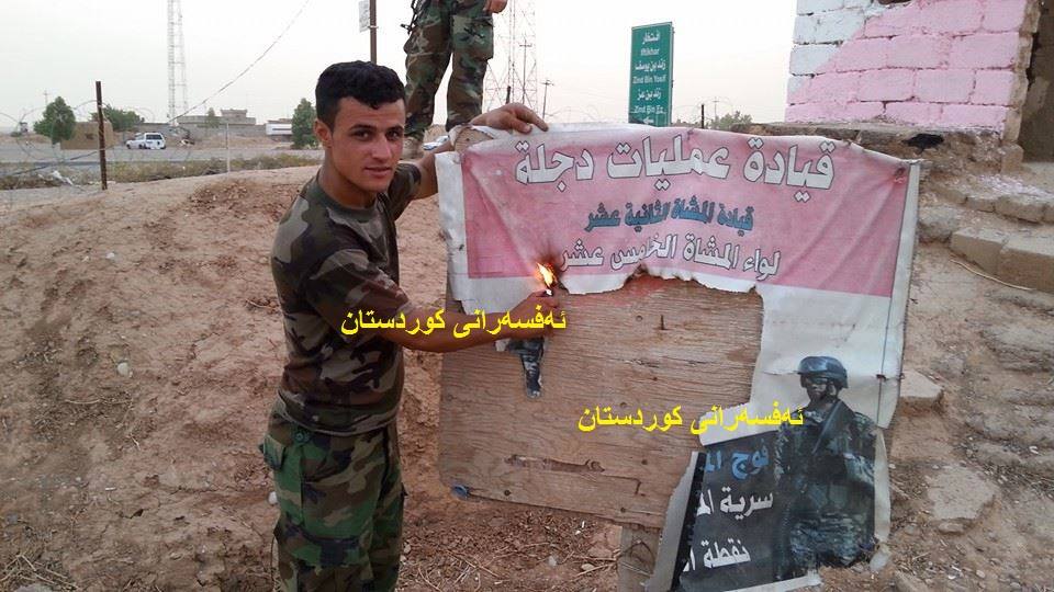 پێشمەرگەیەک پۆستەری هێزەکانی دیجلە دەسووتێنێت لە کەرکووک