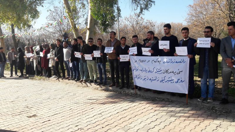 - یەکەمەکانی زانکۆ و پەیمانگاکانی هەرێمی کوردستان لەبەردەم بینای ئەنجومەنی وەزیران لە #هەولێر# خۆپیشاندانیان ئەنجامدا و تیایدا داوایان کرد کە دابمەزرێنرێن.[1]