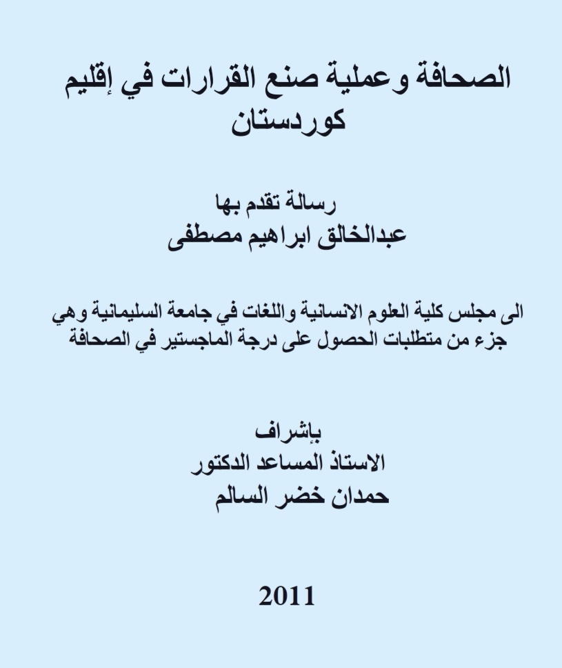 عنوان الكتاب: الصحافة و عملية صنع القرارات في إقليم كوردستان