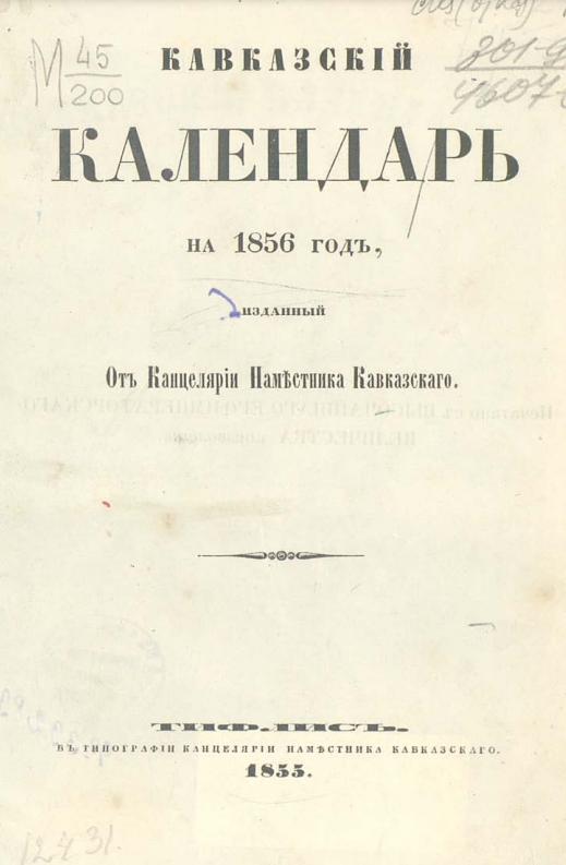 название книги: КАВКАЗСКIИ КАЛЕНДАР НА 1856 годь