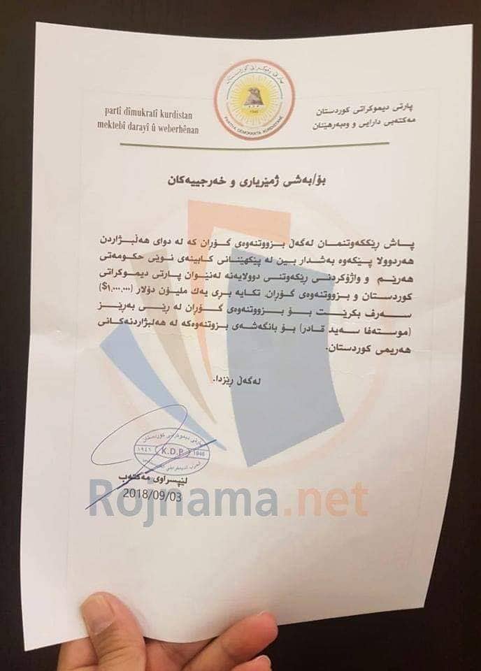 ⚠️ تێبینی: کوردیپێدیا لە دروستیی ئەم بەڵگەنامەیە دڵنیا نییە، هۆکاری بڵاوکردنەوەی بۆ ئەوەیە کە لە پاشەڕۆژدا ڕاستی و دروستیی ئەم بەڵگەنامەیە بسەلمێدرێت.