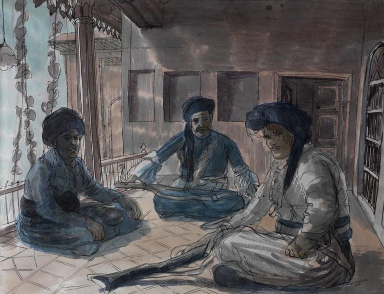 سێ زەڵامێن کورد لبەر هەیوانا باڵەخانەیەکە باژێڕێ سلێمانی