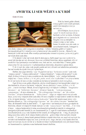 AWIR’EK LI SER WÊJEYA K’URDÎ