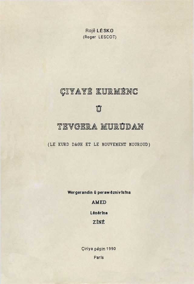 Roger Lescot giraniya xebata xwe ya zanistî dide ser Kurdan; Kurdî hîn dibe, çîrok, metelok û efsaneyên Kurdî berev dike, li ser jiyana Kurdan ya civakî, li ser ola Êzidiyan lêkolînan dike. Hin beş ji vê xebata wî ya destpêkê di kovara Hawarê de di bin navê Tawusparêzî bi Kurdî û bi Fransizî derdikevin.
