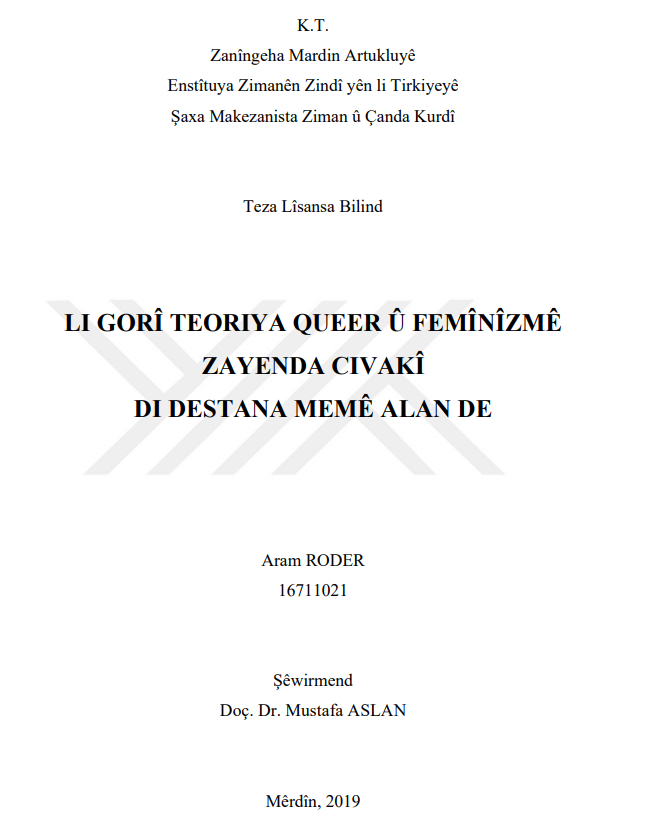 Navê pirtûkê: LI GORÎ TEORIA QUEER Û FEMÎNÎZMÊ ZAYENDA CIVAKÎ DI DESTANA MEMÊ ALAN DE