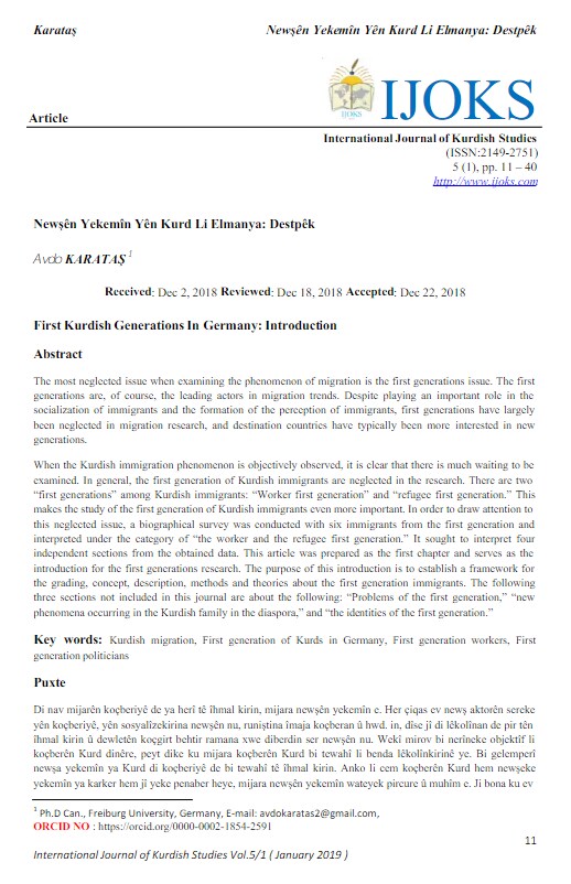 International Journal of Kurdish Studies, 5 (1), pp. 11 – 40, 2019.